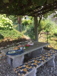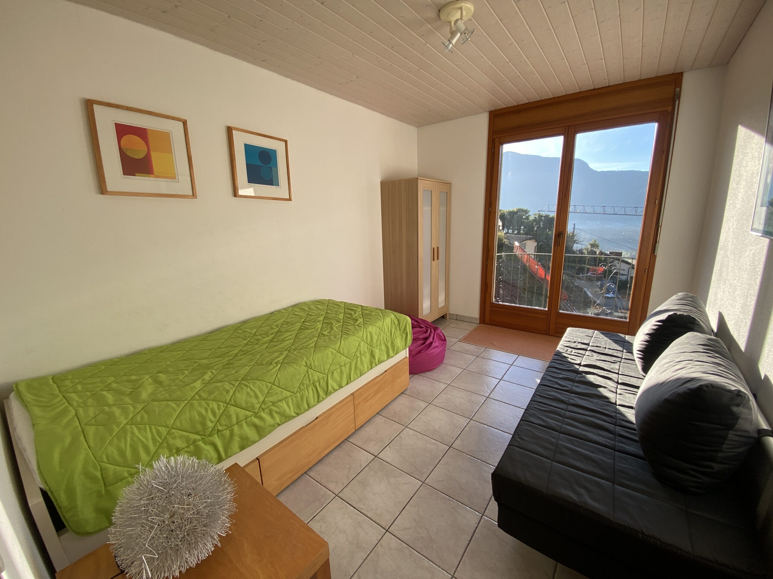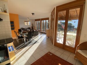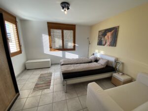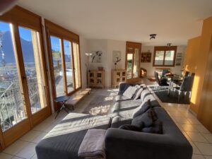 Das schöne Haus, Baujahr 2001, erstreckt sich über drei Etagen. Im Erdgeschoss befinden sich der Eingang, der grosszügige Wohn- und Essbereich mit offener Küche. Von hier aus gelangen Sie direkt auf die überdachte Terrasse, zum Pool- und Spielbereich. Des weiteren gibt es im Erdgeschoss ein Schlafzimmer/Büro und ein Badezimmer mit Dusche/WC. Im 1 Stock befinden sich drei Schlafzimmer, zwei davon mit nach Süden ausgerichtetem Balkon mit herrlichem Panoramablick. Im Untergeschoss Waschküche, Keller und ein Hobbyraum. Von hier aus gelangt man direkt zur Pergola mit Steintisch und Kiwibaum.