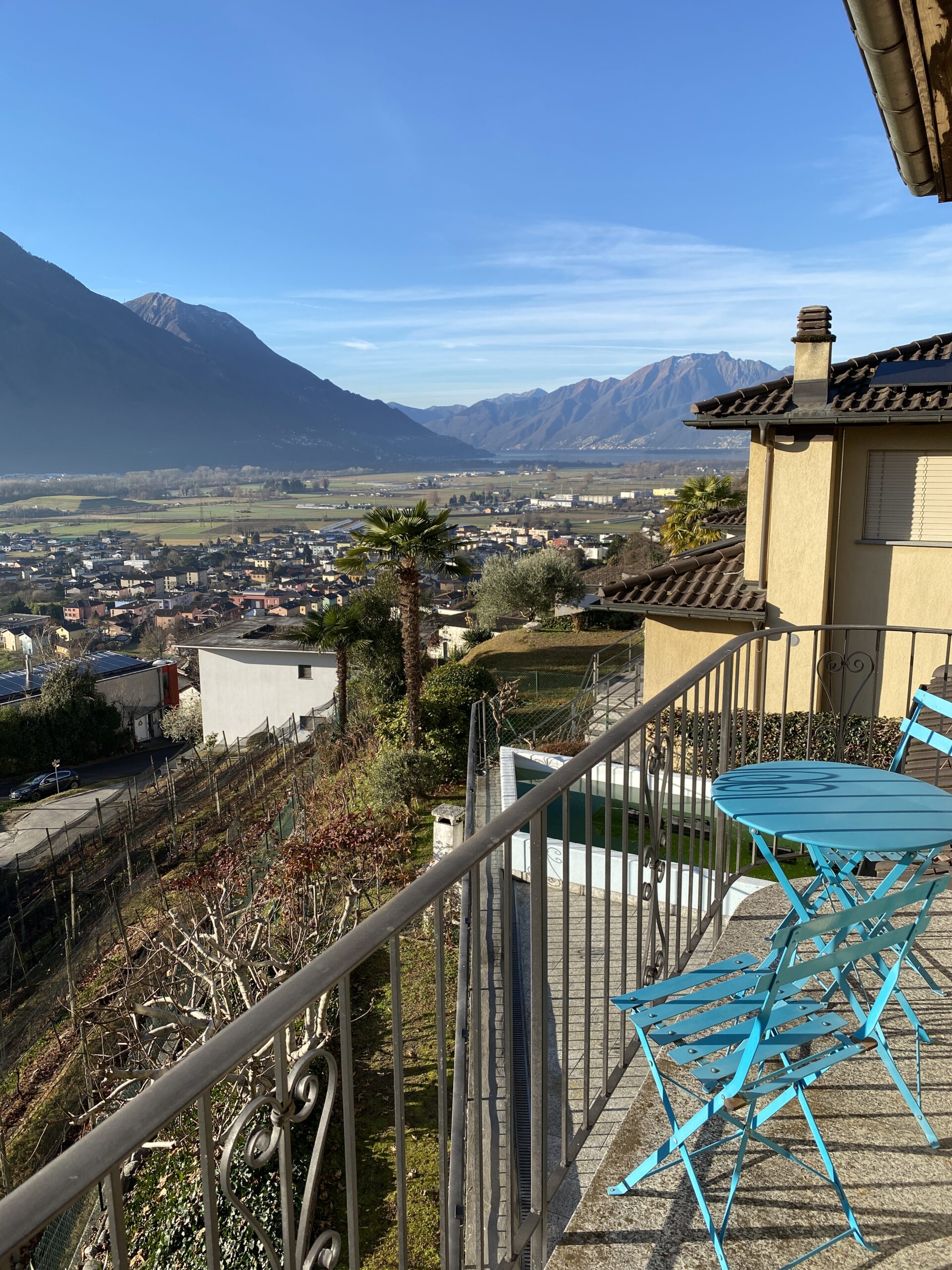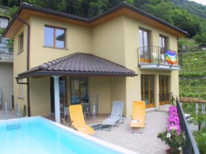 Cugnasco liegt strategisch günstig zwischen Locarno und Bellinzona. Die moderne Gemeinde verfügt über alle wichtigen Infrastrukturen. Die schöne Liegenschaft befindet sich in sehr gutem Zustand und verfügt über ein Schwimmbad und Grünflächen. Es liegt südlich gerichtet leicht am Hang am oberen Rande des Wohngebiets, idyllisch angrenzend an Weinberge. Die sonnige und ruhige Lage bietet einen herrlichen Blick auf die Berge, die Magadinoebene und in der Ferne den Lago Maggiore. Das Ortszentrum mit Bushaltestelle sowie Grund- und Mittelschule ist ca. 1 km entfernt. Mehrere Supermärkte sind ca. 3 km entfernt.